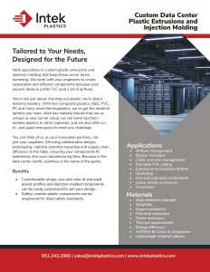 Intek specializes in delivering precision custom data center plastic extrusions and plastic injection molded parts. Our dedicated team works closely with your engineers to create sustainable and efficient plastic components that meet your specifications and are designed with the future in mind.